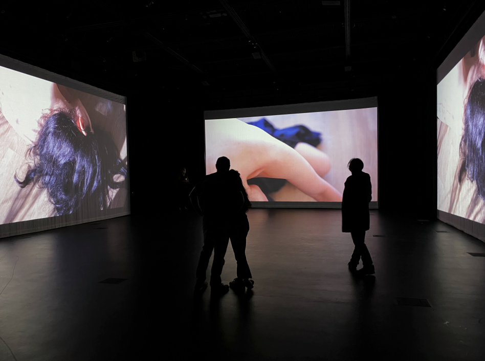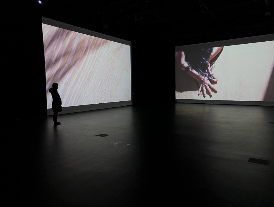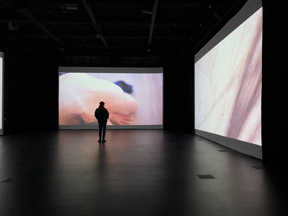 Please scroll down for documentation stills of the installation and original three-channel video.